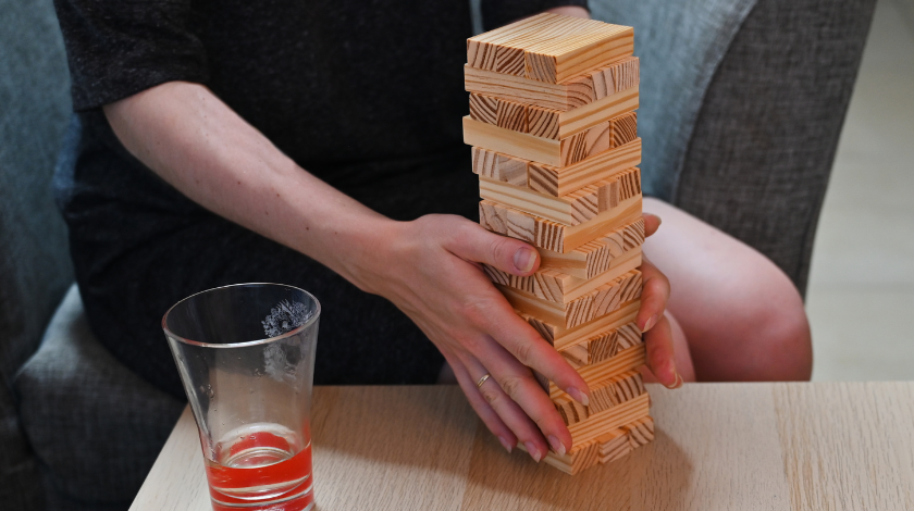 Keep going: Play continues until the tower collapses. The person who caused it to fall loses.